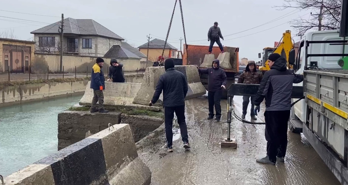 Вдоль канала имени Октябрьской революции начали установку бетонных ограждений, сообщила 24 февраля в своем телеграм-канале администрация Махачкалы.