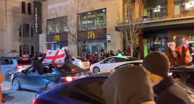 Жители Грузии всю ночь на улицах праздновали успех сборной своей страны. Политик поспешили набрать очки на спортивной теме.
