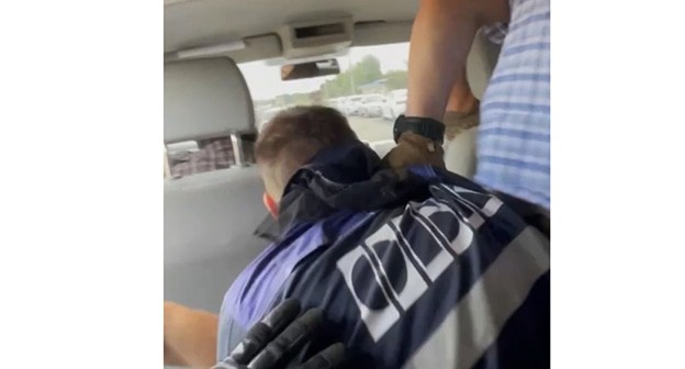 Как следует из видео, которое опубликовало региональное издание "Арбуз Today", силовики посадили мужчину в рабочей одежде в свою машину на трассе, его лицо размыто. Затем показано как задержанный в сопровождении силовиков выходит из здания, его лицо закрыто шапкой, на лицах силовиков балаклавы.