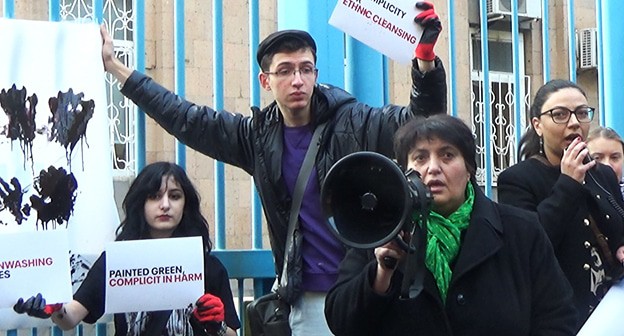 15 ноября перед зданием офиса ООН в Ереване прошла протестная акция Stop Greenwashing Genocide! в ответ на решение ООН провести Климатическую конференцию COP29 в Баку. В акции принимала участие шведская экоактивистка Грета Тунберг, которая отказалась участвовать в COP29 из-за ее "нетерпимости к политике Алиева", передает корреспондент "Кавказского узла".