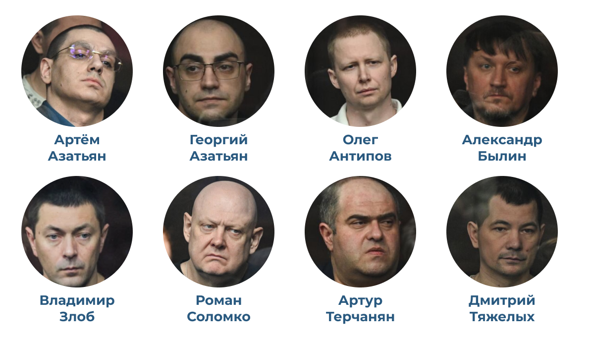 Правозащитники признали политзаключенными всех восьмерых обвиняемых по делу о подрыве Крымского моста, чье дело сейчас слушается в Южном окружном военном суде в Ростове-на-Дону: Артема Азатьяна, Георгия Азатьяна, Олега Антипова, Александра Былина, Владимира Злоба, Романа Соломко, Артура Терчаняна и Дмитрия Тяжелых. По мнению правозащитников, все они - случайные люди, до которых следствие "смогло дотянуться", тогда как настоящие организаторы и исполнители для российских властей недоступны.
