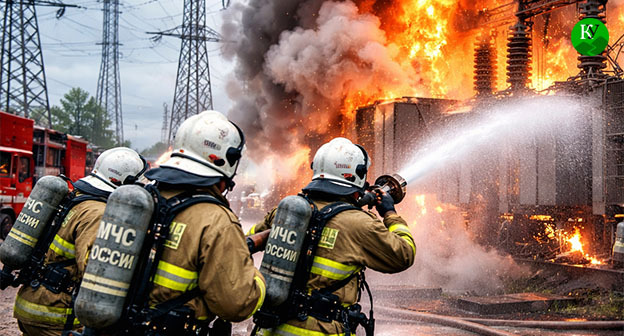 На Кубани после атаки БПЛА потушили электроподстанцию