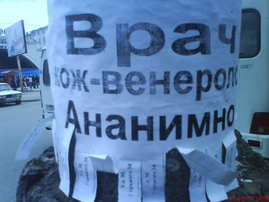 А вы бы обратились к такому врачу? а ведь эта фотография, снятая на "Дружбе" действительно хорошо иллюстрирует грамотность некоторых наших врачей. и в первую очередь венерологов, которые, пользуясь...