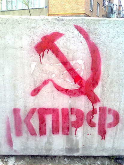 Сразу оговорюсь - кровь не настоящая.Это кровь на "фирменном логотипе" коммунистов, которыми украсили Владикавказ несколько дней назад, накануне первомая и выборов в городскую думу. Согласитесь, оч...