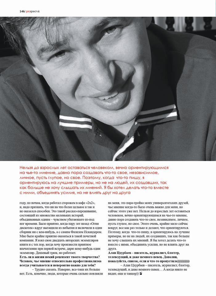 Алан Цхурбаев - писатель, журналист, блогер, телеведущий, и даже немного певец, а когда никто не видит даже танцор)).