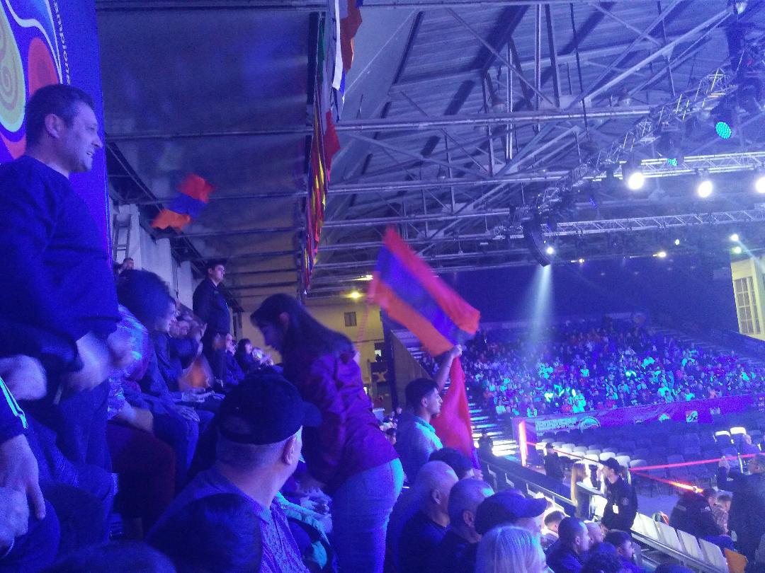 а когда дрались армянин и россиянин, трибуны совсем перевозбудились. невозможно было понять кого больше публика поддерживает. половина кричала Хайястан, вторая что-то на чеченском. в итоге победил наш Беслан Хамзаев.