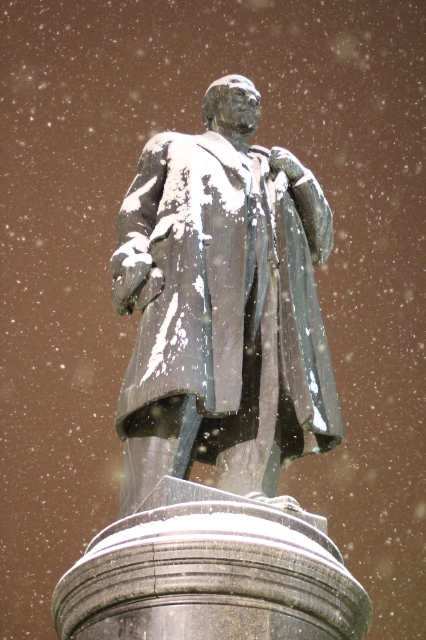 это памятник Пушкину. по-моему, ему так идет – снег, пурга, и сгорбленный АС въезжает на Кавказ...