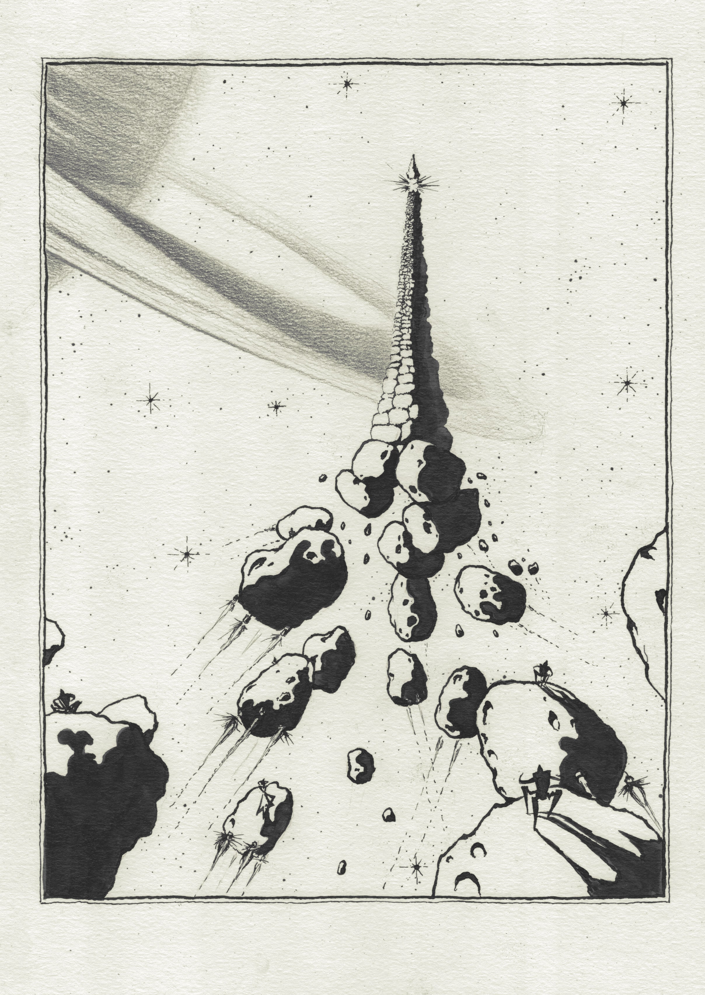 в продолжение темы со скандалом вокруг рисунка Ростана Тавасиева. пообщался с художником, и с его позволения выкладываю здесь его комментарий к ситуации, а также полную серию "Башни в кольцах Сатурна", откуда и взят тот самый рисунок.