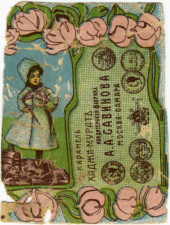 Такое же стилизованное изображение, явно отсылающее к Закавказью, — на обложке карамели, сделанной на фабрике в Одессе.