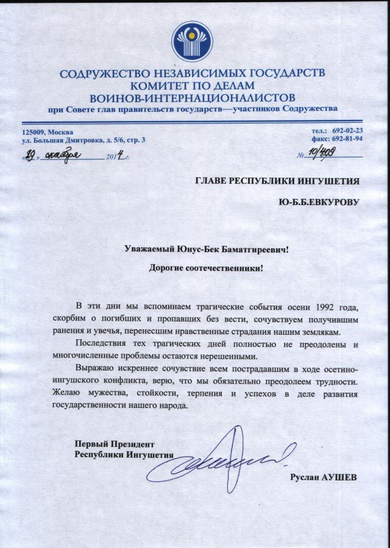 Обращение Руслана Аушева в связи с 22 годовщиной трагических событий осени 1992 года