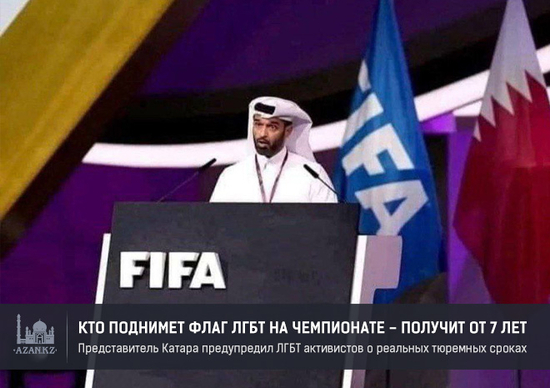 «Кто бы ни поднял флаг ЛГБТК на чемпионате мира, будет арестован на 7 или 11 лет, мы здесь, в исламской стране, вы должны уважать нашу религию, убеждения и культуру», – говорится в заявлении организаторов