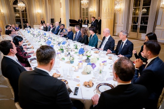 Премьер-министр и президент Грузии, далеко друг от друга, на торжественном ужине, организованном от имени президента Франции Эммануэля Макрона и его супруги Бриджит Макрон.