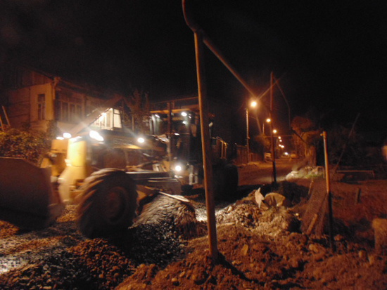 Нашу улицу усиленно ремонтируют всю вторую половину лета. Сначала ее перекопали газовики, потом водопровод-канализационные сети рыли траншеи. И вот теперь дорожники, сняли многочисленные слои асфальта и даже грунта и улица стала ниже почти на метр. Тпереь второй день, ее засыпают гравием. Но сегодня случилось чудо, нашу улицу осветили. Впервые, за много-много, ну лет двадцать пять точно. Приехала такая спец машина электриков, как же она называется, такая стрела с корзинкой, и за несколько часов установили аккуратные лампионы на каждом столбике. "Будут в ночь работать, что бы успеть к холодам" – заговорили ворчливые соседи. И в самом деле, уже десятый час, а за окном ….