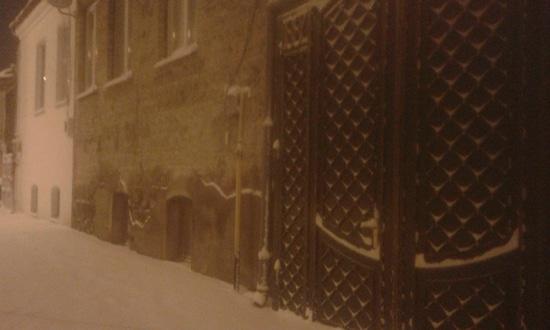 Ого - следы, ведут к моей калитке. Кто это мог быть среди ночи? Это я сам. Сцена постановочная. Просто прошелся «задним ходом». Чего не сделаешь ради удачного кадра.
