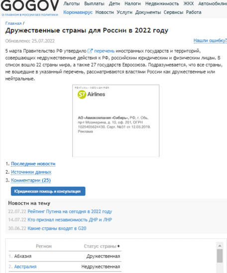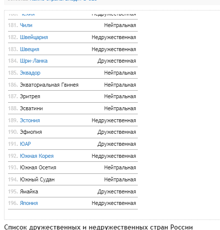 Вчера смотрел передачу, явно враждебную РФ,Заранее отвечаю возможным обвинителям в том что я такое смотрю, что врага надо знать. Так вот, речь шла о новом, расширенном списке недружественном России стран, и за спиной у ведущего, заметил пробегающий список. Причем, список был стран дружественных, как объявил тот ведущий.. В том списке я и заметил Грузию. Не поверил пропагандисту украинскому! Потому и обратился к списку официальному. Официальнее чем в РИА Новости - не бывает, разве что уже в Российской Газете. Но у РИА нагляднее
