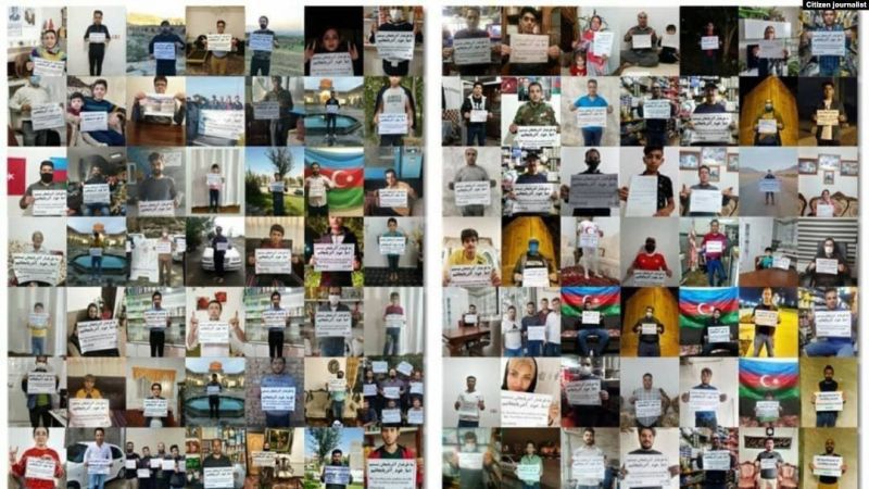 Показываю фотографии флешмобов, демонстраций 30-миллионов азербайджанцев в Иране против [...] агрессии. Он говорят: мы не рядом с азербайджанцами, мы и есть азербайджанцы. Наши братья в Иране перекрывают дороги ведущие в Армению, сжигают грузовики, в которых Тегеран отправляет в Армению военное снаряжение. Тегеранские правители вынуждены многократно заявлять требования к Еревану вывести свои войска из Карабаха