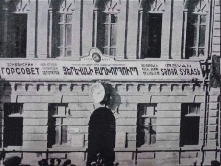 Следующий снимок - исторический, из 30 годов, снят на улице Иравана. На стене здания вывески на трех языках - армянском, русском и азербайджанском. Причем написано - Ираван. Такими были армяне, и какими они стали, побежав по указке миацумщиков? Чего добились? Смог бы Тер-Петросян заварить эту вражду без поддержки народа?