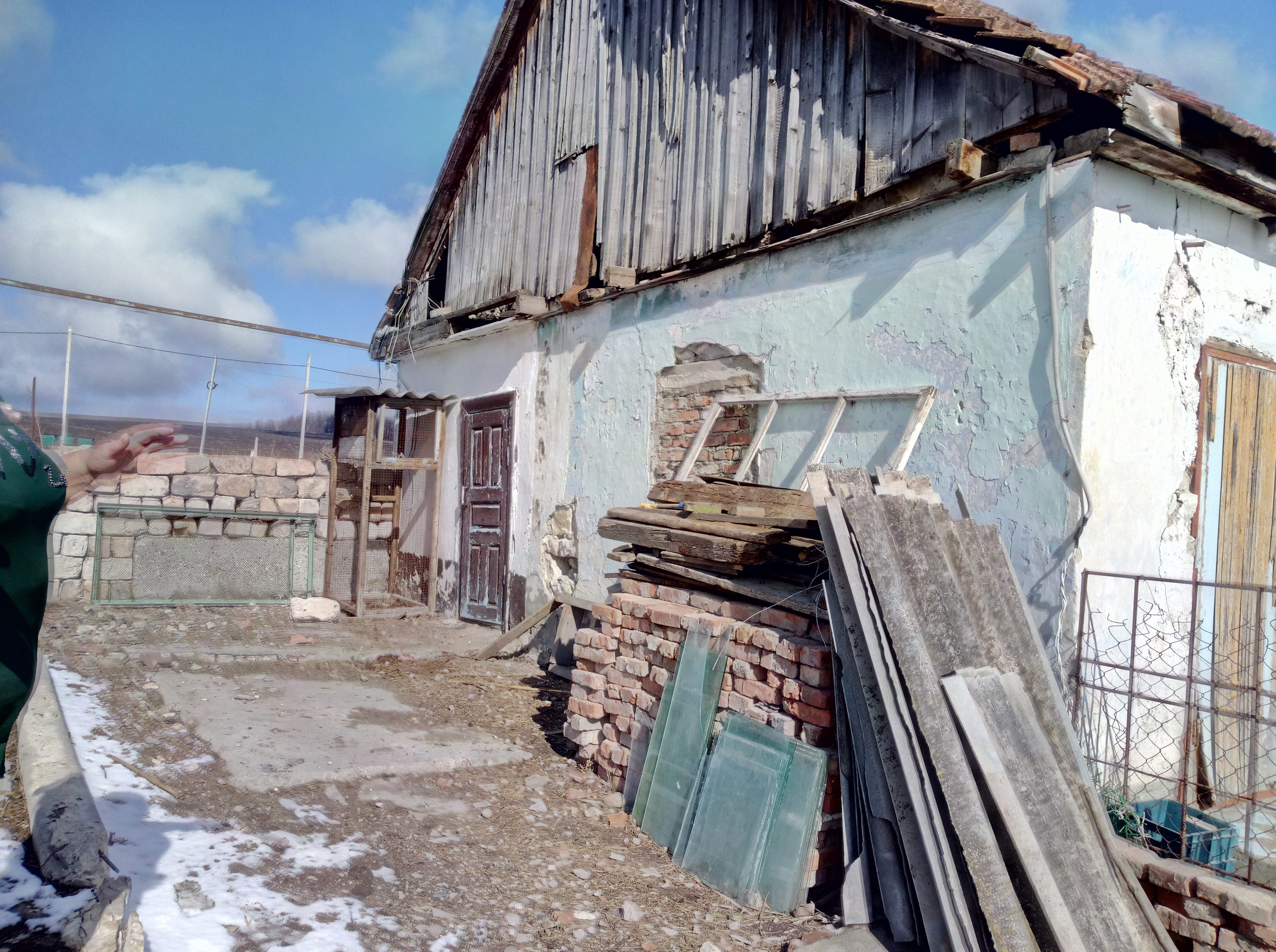 Больше всех меня шокировало состояние жилища матери троих детей Фатимы Шоровой. И если бы я все это не увидела своими глазами, я бы, пожалуй, не поверила, что в XXI веке можно жить в доме, где изнутри видно небо, где топят дровами печь, сложенную из камней, либо из кирпичей, точно не могу сказать. Короче описать условия жизни Фатимы, просто не хватает красок. Представление, возможно, дадут, фотоснимки.