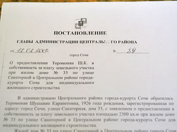 Семья Торомонян заявляет об изъятии под олимпийский объект их домовладения без учета его стоимости. Сочи, август 2013 г. Фоторепортаж корреспондента "Кавказского узла" Светланы Кравченко