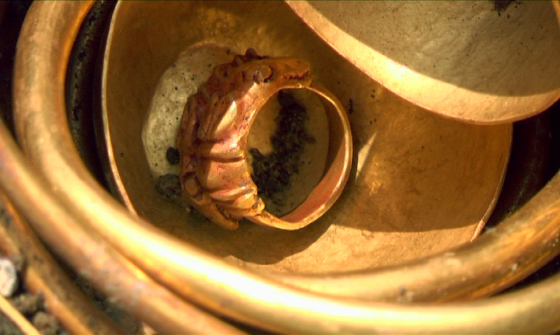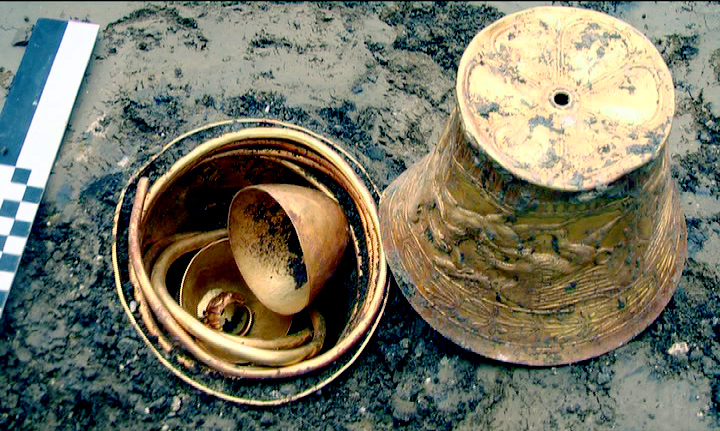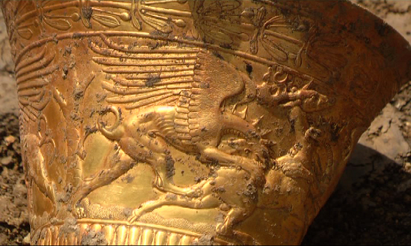 Золотая ваза со сценой терзания грифонами лошадей и оленей.