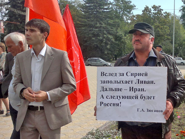 Митинг против военного разрешения конфликта в Сирии. Черкесск, 14 сентября 2013 г. Фоторепортаж корреспондента "Кавказского узла" Аси Капаевой