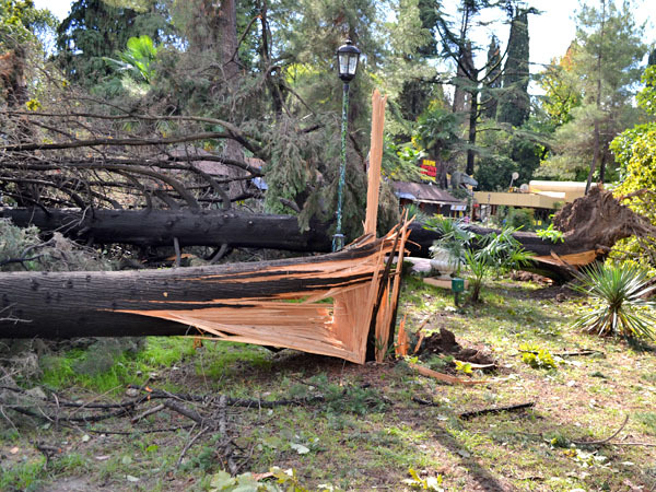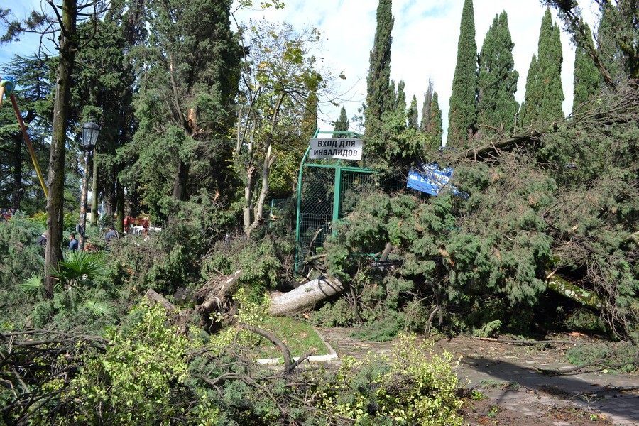 Вечером 25 сентября ураган, сопровождаемый обильным дождем, обрушился в основном на центральный район Сочи. Ураган действовал локально, охватив три, граничащие друг с другом микрорайона: «Центральный», «Завокзальный» и «Гагаринский», расположенные на равнинной территории города. Особенно пострадали парк «Ривьера», Платановая аллея, улицы Егорова, Горького, Гагарина, Цветной бульвар, Островского, Парковая, Чайковского, Дагомысская, частично Навагинская, Советская и Конституции.
