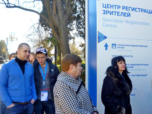 Зрители зимней Олимпиады в Сочи отмечают большие очереди у билетных касс. Сочи, 13 февраля 2014 г. Фоторепортаж корреспондента "Кавказского узла" Светланы Кравченко