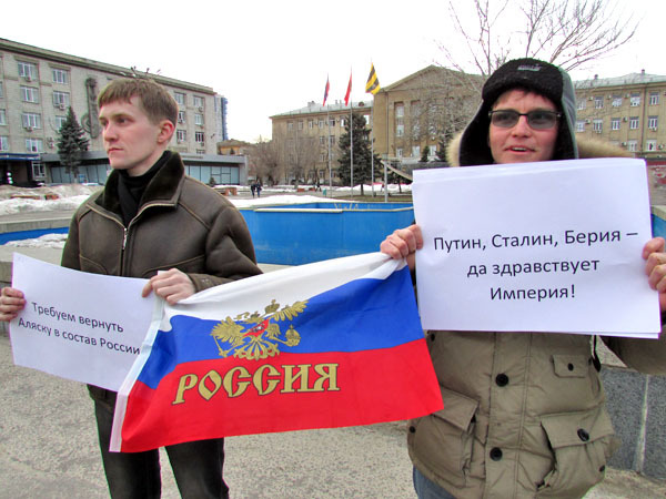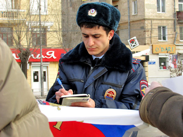 Абсурд-пикет против политики властей РФ в Украине. Волгоград, 13 марта 2014 г. Фоторепортаж корреспондента "Кавказского узла" Вячеслава Ященко