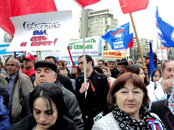 Митинг в поддержку присоединения Крыма. Нальчик, 18 марта 2014 г. Фоторепортаж корреспондента "Кавказского узла" Людмилы Маратовой