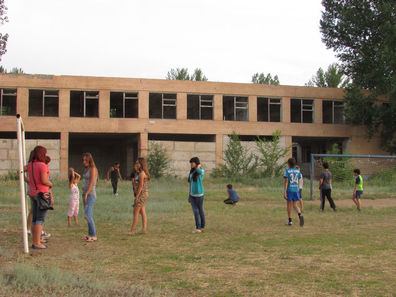По словам помощника председателя управляющего совета Рахинской школы Юнади Бангарова, школа в селе Рахинка была построена совхозом-миллионером по "новейшему проекту" в 1982 году.