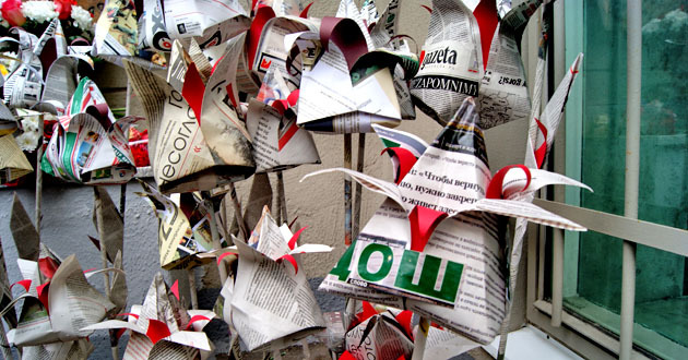 Возложение бумажных цветов к мемориалу Анны Политковской. Москва, 7 октября 2014 г. Фоторепортаж корреспондента "Кавказского узла" Аиды Магомедовой