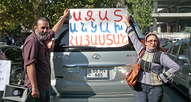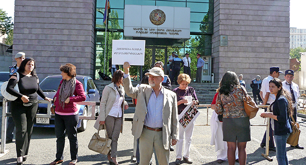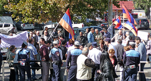 Акция протеста сторонников лидера партии "Цегакрон" Шанта Арутюняна перед зданием суда, где проходят слушания по делу участников акции 5 ноября 2013 года. Фоторепортаж корреспондента "Кавказского узла" Армине Мартиросян