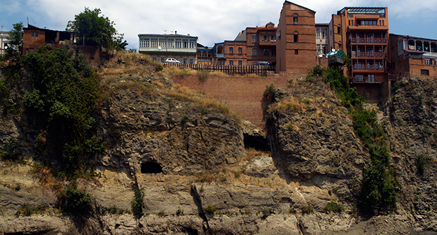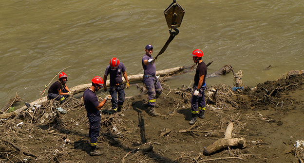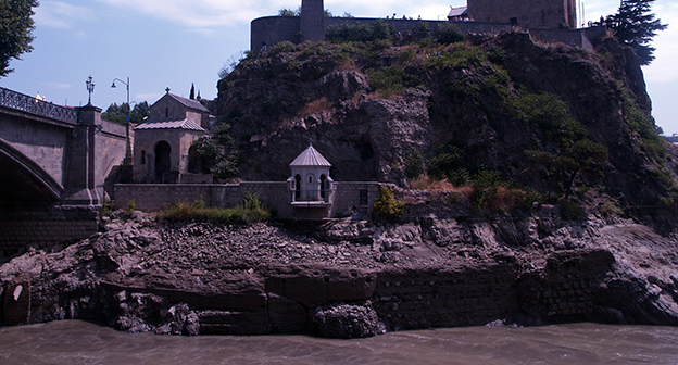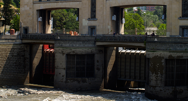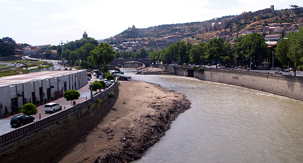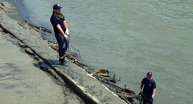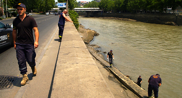 Осушение Куры во время поисковых работ. Тбилиси, 5 июля 2015. Фоторепортаж корреспондента "Кавказского узла" Беслана Кмузова.