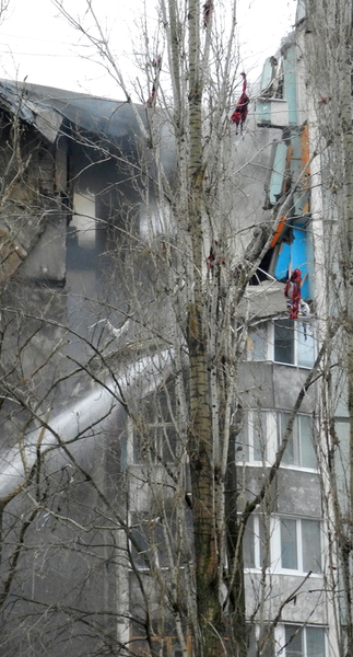 Тыльная сторона дома, горят несколько квартиры