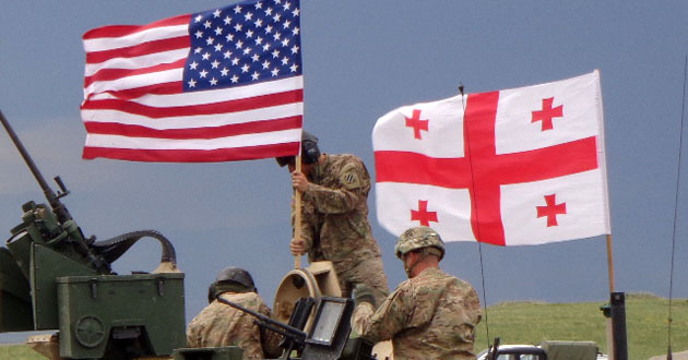 Над танком "Абрамс" развивались флаги Грузии и США