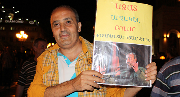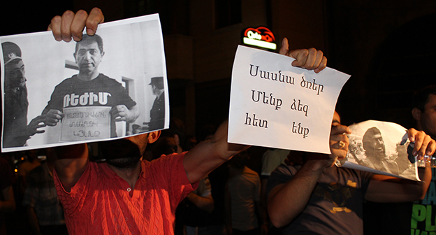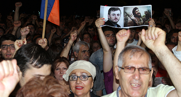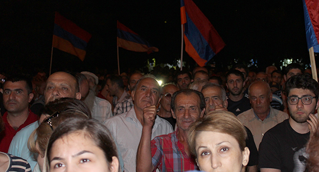 26 июля в Ереване состоялся очередной митинг в поддержку отряда “Сасна Црер”, захватившего полк полиции. Акция протеста прошла на улице Хоренаци, несмотря на призыв полиции к оппозиции перенести место митинга. Оппозиция заявила, что не собирается менять место проведения собраний.