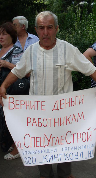 29 июля рядом с офисом группы компаний “Кингкоул-Юг” прошел очередной из серии согласованных с властями пикетов. Оставшиеся без работы шахтеры требовали выплаты задолженностей по заработной плате — 300 млн рублей.