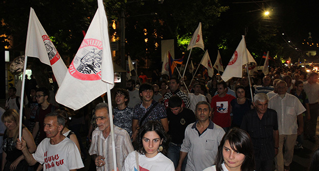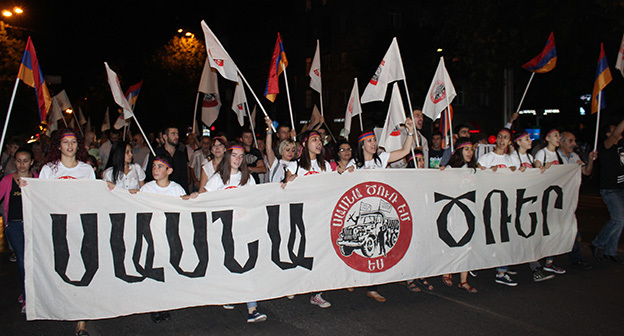 9 сентября в Ереване был организован митинг-шествие в поддержку «Сасна Црер», захватившего и удерживающего на протяжении двух недель полк патрульно-постовой службы в Ереване.