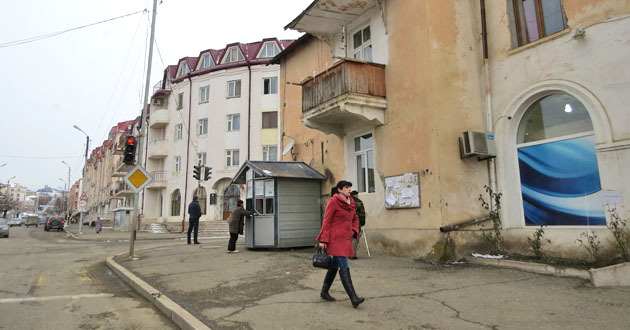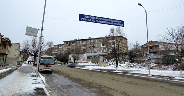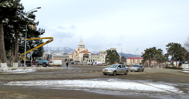 В центре Степанакерта большой плакат призывающий сказать «Да» проекту Конституции