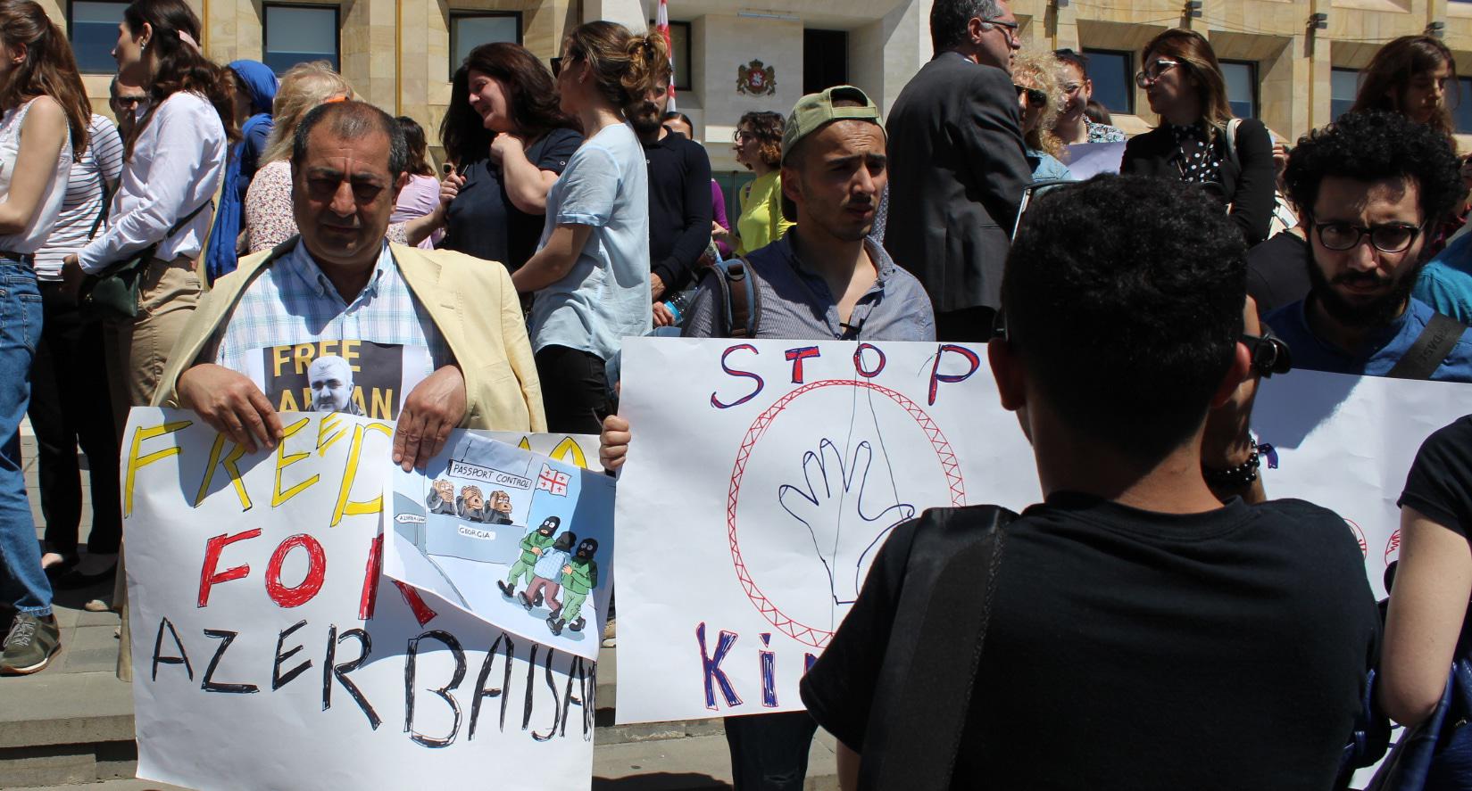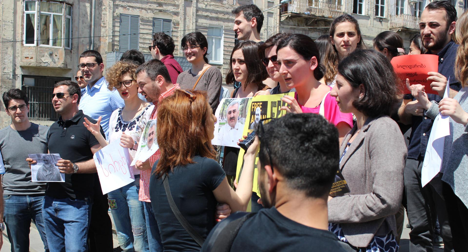 Грузинские журналисты провели акцию в поддержку коллеги из Азербайджана Афгана Мухтарлы