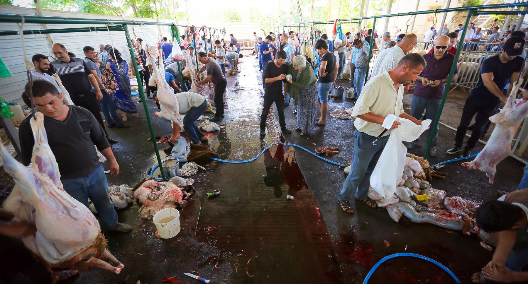 С утра начались церемонии жертвоприношения. Власти организовали ярмарки по продаже 35 тысяч голов скота, еще 13 тысяч голов выставили на продажу фермерские хозяйства. Забой скота проводился прямо в местах продажи.