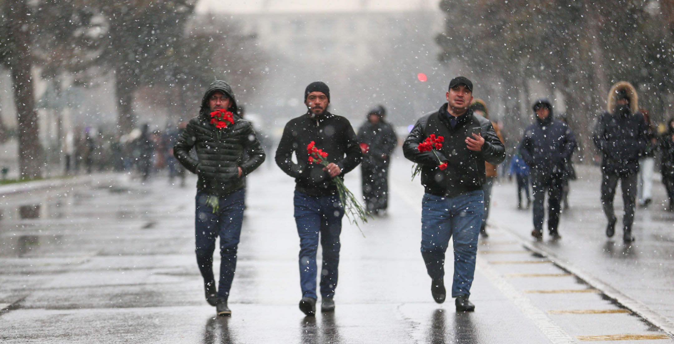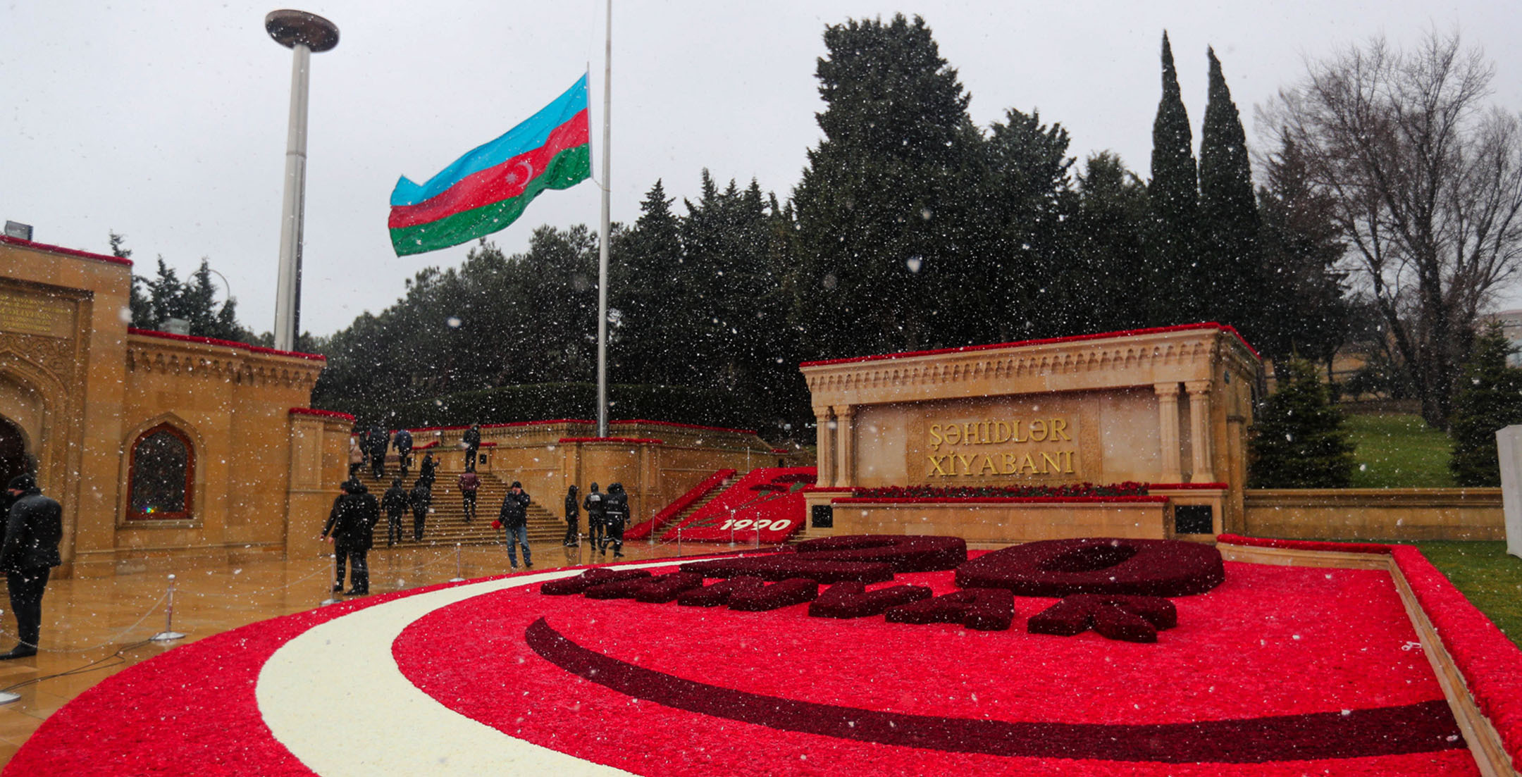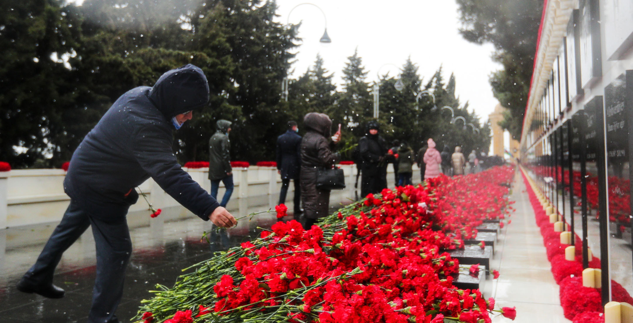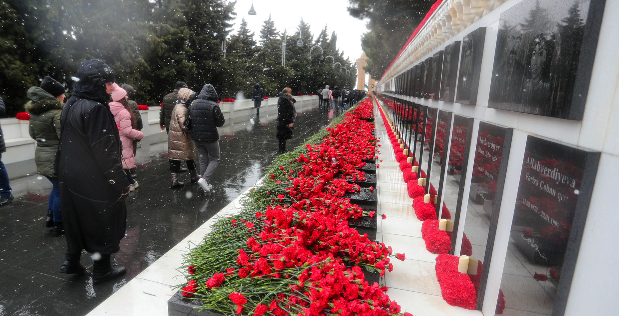 С утра началось массовое шествие на Аллею шехидов с целью почтить память жертв «Черного января»