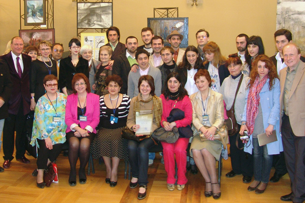 Участники выставки молодых грузинских художников «Мир Льва Толстого.Тбилиси, 16 апреля 2011 г. Фото Дениса Гоноболина.