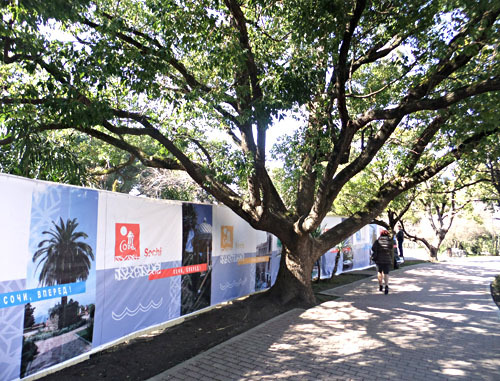 Строительные заборы на Приморской набережной в парковой зоне возле Зимнего театра и гостиницы «Приморская». Сочи, 21 марта 2012 г. Фотокорреспондент «Кавказского узла» Светлана Кравченко