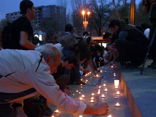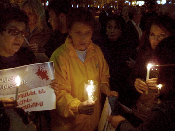 В Ереване на площади Свободы состоялась церемония зажжения свечей, организованная инициативной группой “Вставай, Армения!” и АРФ “Дашнакцутюн”, в память об убитом главе села Прошян Котайкской области Грачье Мурадяне.