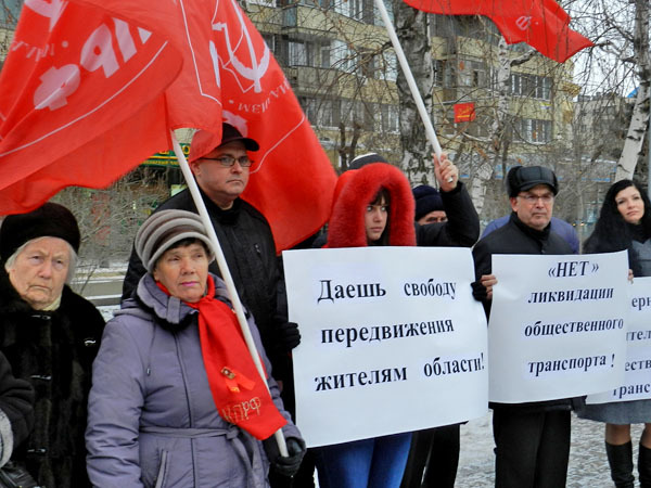 Жители Волгоградской области выступили против сокращения пассажирских перевозок в регионе. Волгоград, 14 февраля 2013 г. Фото Татьяны Филимоновой для "Кавказского узла"